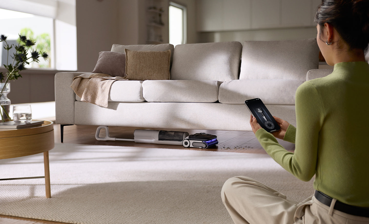 앱을 사용하여 침대나 소파 아래까지 기기를 자유롭게 조작할 수 있어 허리를 숙일 필요가 없습니다.