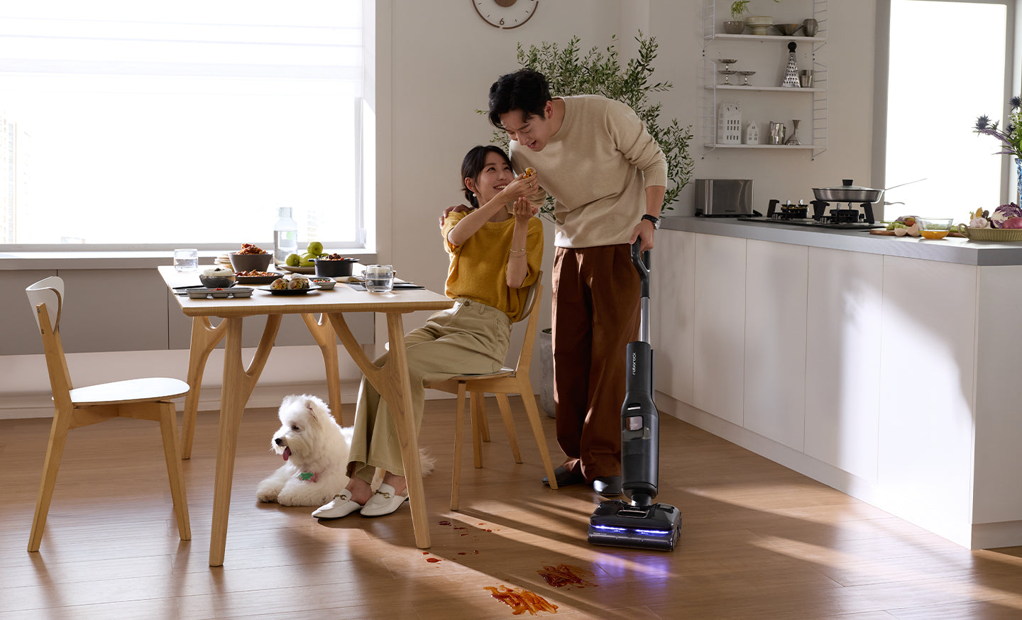 강력해진 흡입력으로 매일 쌓이는 젖은 오물과 마른 먼지를 한 번에 깔끔하게 흡입합니다.